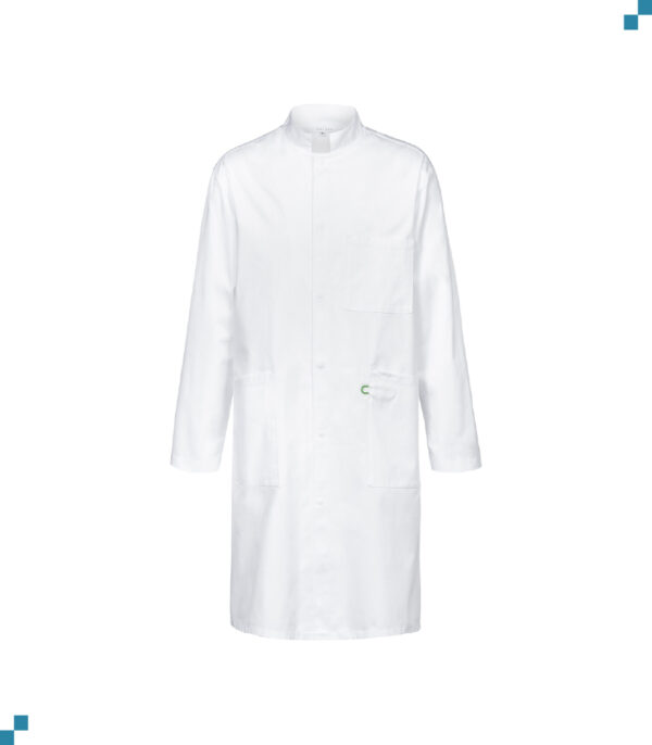 Opstaande kraag, verdekte drukknopsluiting, 2 opgezette zakken, borstzak met pennenvakje, geintergreerde telefoonzak, sleutelhanger geïntegreerd in linker zak, rugsplit, riem rugzijde, ruglengte 100 cm/maat M, 100 cm/Gr. M