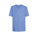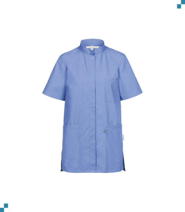 Opstaande kraag, korte mouw, verdekte drukknopsluiting, 2 opgezette zakken, borstzak met pennenvakje, zijsplit, verlengde rug, sleutelhanger geïntegreerd in linker zak, ruglengte 75 cm/maat M.