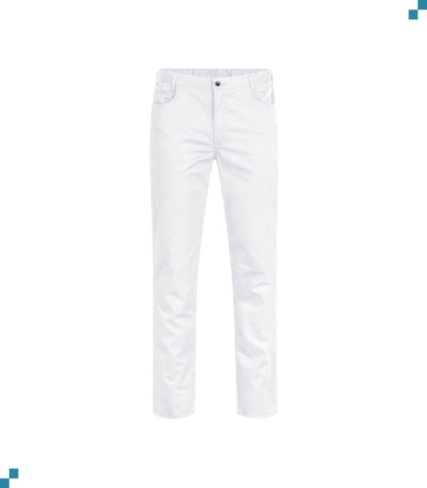 5-pocket-model, elastische band rugzijde, 2 zijzakken, voetwijdte 38 cm/maat 50, binnenbeenlengte 84 cm/maat 50.