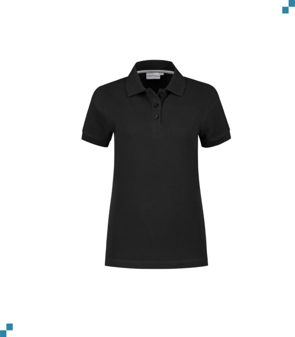 Poloshirt, 95% katoen / 5% elastaan, 200 gr/m², micro piqué, (stretch) ladies fit, polokraag, 3-knoopsluiting, mouw met 1×1 ribboord en splitjes in zijnaad.