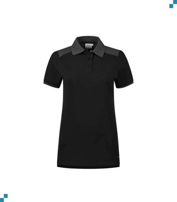 Poloshirt, 60% katoen / 40% polyester, 210 gr/m², piqué, ladies fit, polo- ribkraag, 3-knoopsluiting, splitjes in zijnaad, verlengd achterpand. Kraag, schouderpaneel en mouwzoom in contrast kleur. Brandlabel op onderzijde.