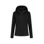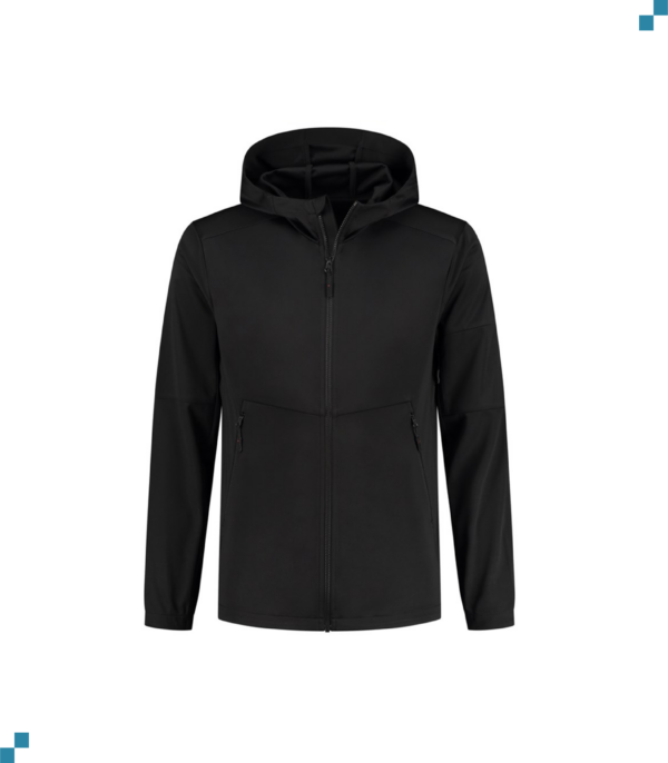 Softshell jacket, 100% polyester, 180 gr/m2, unisex, 3-laags lichtgewicht softshell jacket met verstelbare capuchon, zak op linkermouw in naad verwerkt, steekzakken met rits, YKK ritssluiting, onderzijde verstelbaar met koord en stopper. Alle naden aan de binnenkant zijn afgewerkt met mesh band. Winddicht, waterafstotend 5000mm waterkolom, ademend 5000gr/m2/24h.