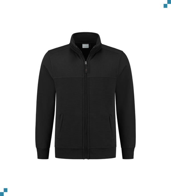 Sweatvest, 50% katoen / 50% polyester, Ottoman, 520 gr/m² gecombineerd met een interlock kwaliteit van 400 gr/m², geruwde binnenzijde, unisex, modern fit, een verdekte YKK spiraalrits, halve maan en 2 steekzakken met verdekte YKK rits. Kraag, manchetten en tailleband en 2×2 rib.