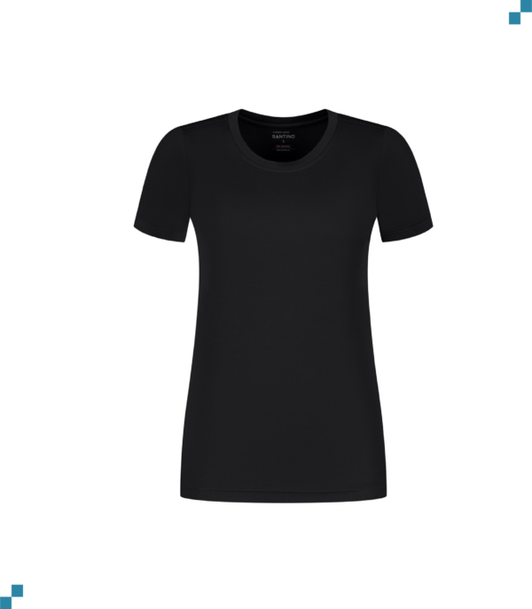 T-Shirt, double face materiaal: 50% gerecycled polyester (buitenzijde) / 50% katoen (binnenzijde), ladies fit, 180 gr/m², piqué, dry Control, ademend, antibacterieel, cooling effect, ronde hals en mouw met fijne ribboord, verlaagde schoudernaad.