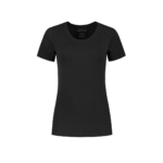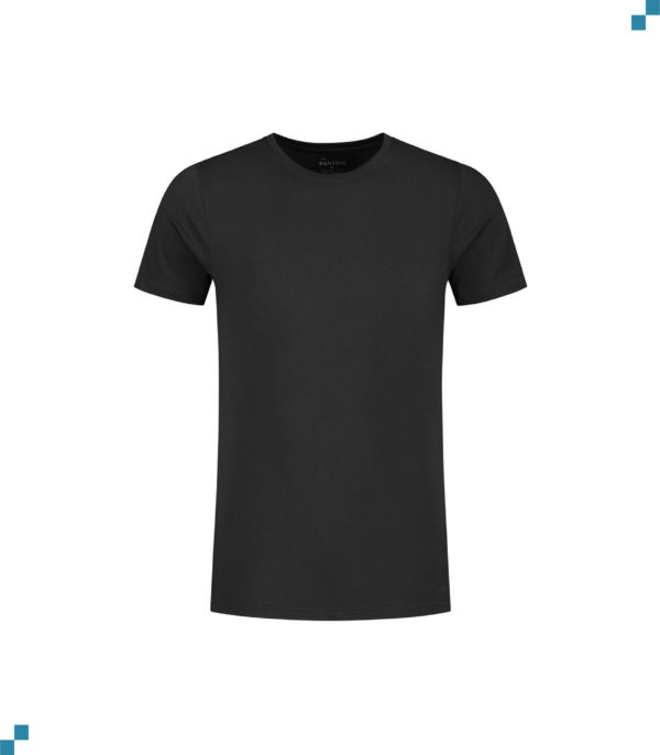 T-shirt, 95% katoen / 5% elastaan, 180 gr/m², unisex, single jersey, (stretch) modern fit, ronde hals en smalle ribkraag.