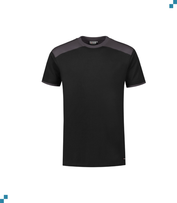 T-shirt, 100% katoen, 190 gr/m², single jersey, unisex, regular fit, ronde hals met 1×1 ribkraag, schouderpaneel en mouwzoom in contrast kleur. Brandlabel op onderzijde.